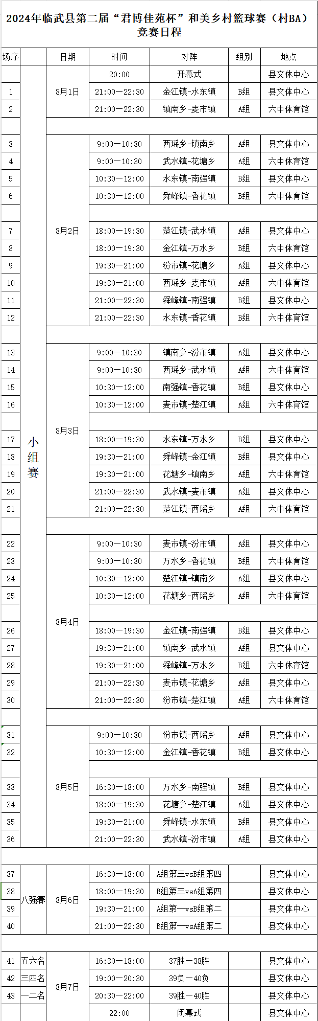 - 开幕式及三四名争夺战将在龙源临武APP、抖音、视频号进行直播;