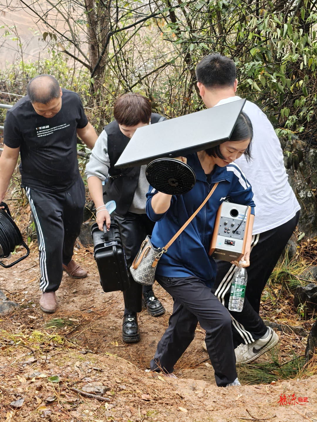 卧龙谷山顶的风很大,吹乱的是所有工作人员的头发、衣角和帽子,吹不散的是拧成一根绳汇成一股劲聚成一条心。