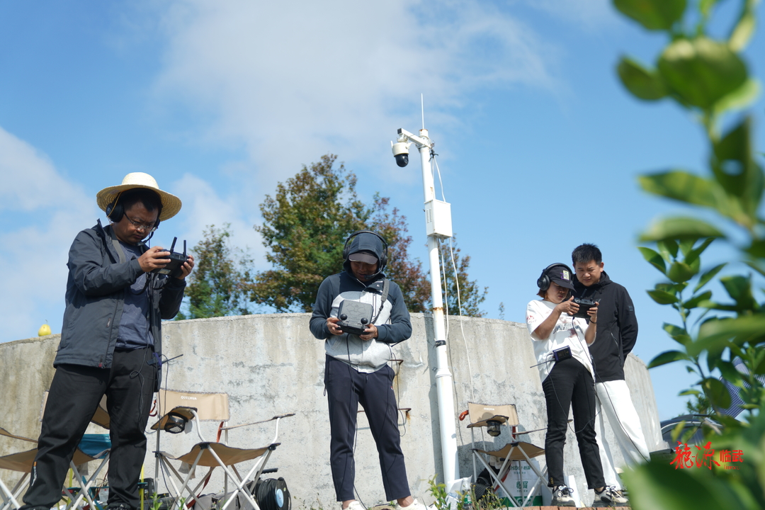 航拍机位,屏息凝神掌控,降雨也好,曝晒也罢,顶着天立着地,3台无人机6只眼睛,一刻都不敢眨。