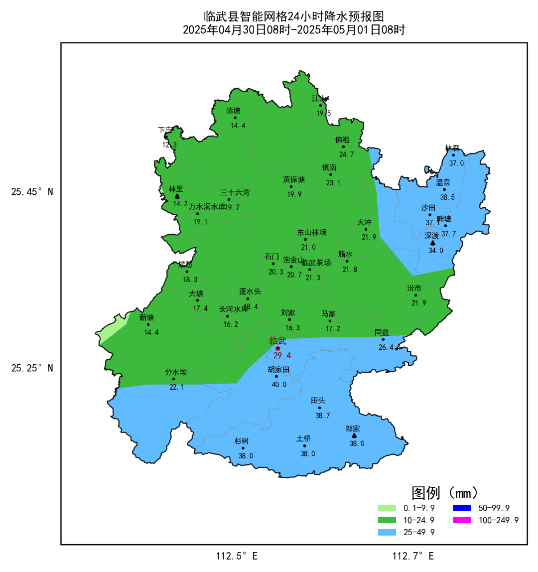 4月30日08时至5月1日08时临武县累计降雨量预报图