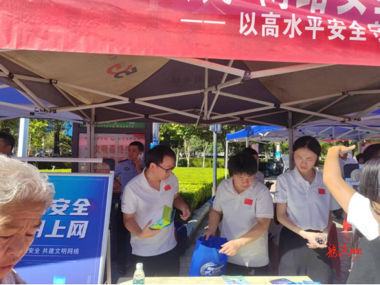 启动仪式现场,临武县委网信办联合县科协、公安局、科工局、总工会、三大通信运营商等29个部门协同行动,通过设置宣传展台、发放科普宣传单、现场答疑等形式,向群众讲解了网络诈骗防范、个人信息保护、数据安全等知识。