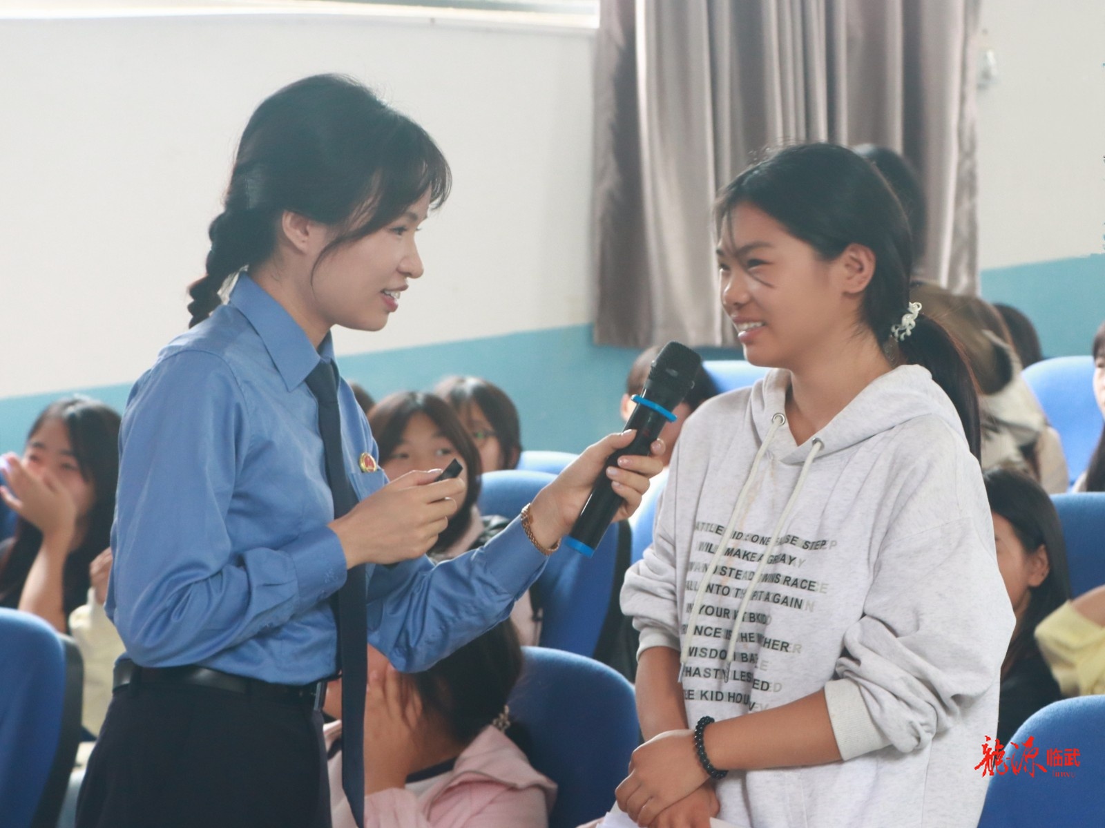 龙源临武客户端9月28日讯(通讯员 唐琦)9月25日,临武县人民检察院到同益中学开展“绿书签,护幼苗;防性侵,要知道”法治教育活动,为该校100余名师生送上了一场内容充实、形式生动的法治教育课,切实将检察关怀与法律知识精准传递到了校园一线。