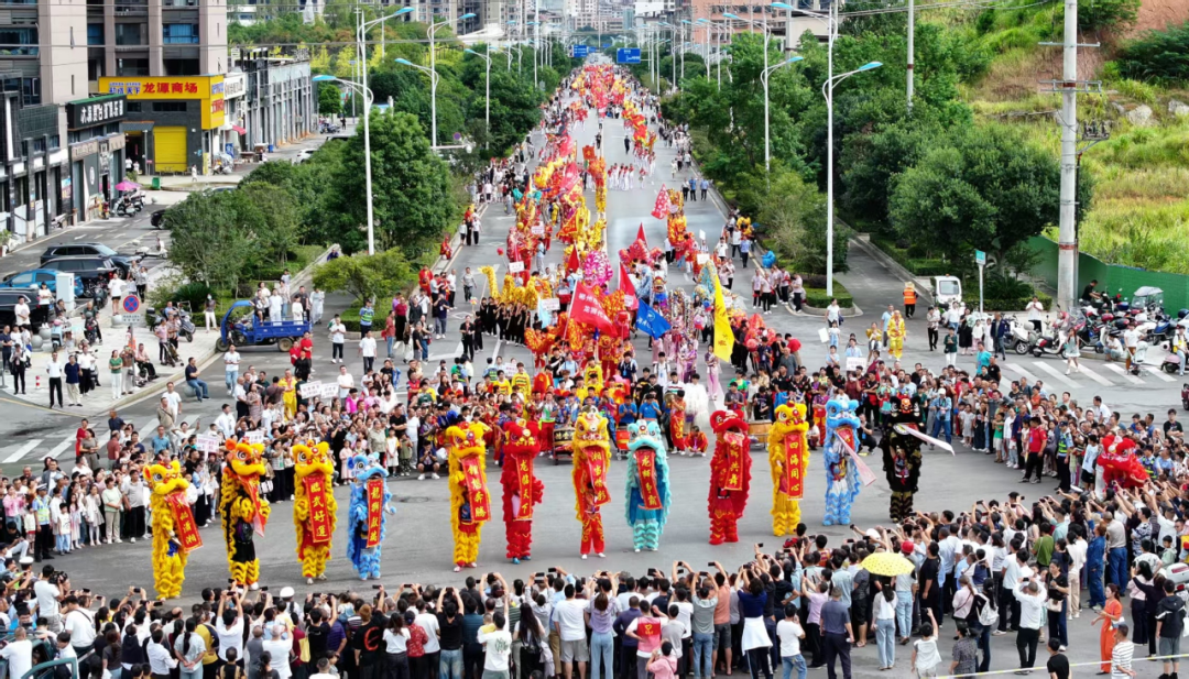 国庆节前,2025年湖南省乡村龙狮争霸赛在临武县举行,全省60支龙狮队汇聚于此。