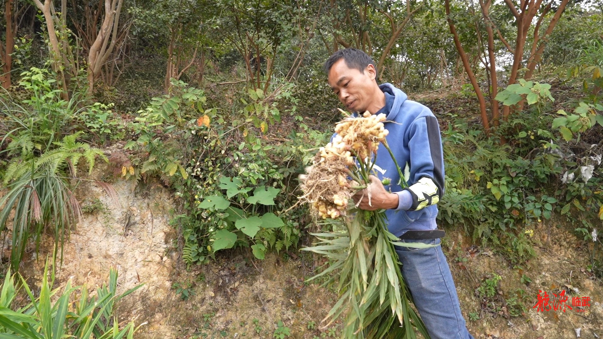 在岭背塘自然村,种植大户黄建设的8亩小黄姜同样长势喜人。作为有着10余年种植经验的“老把式”,从整地播种到施肥采收,他每个环节都亲力亲为,还摸索出一套生态种植法。