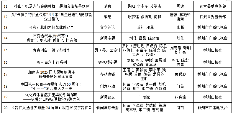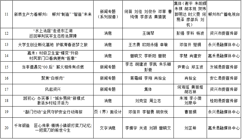 2025年度郴州新闻奖二等奖获奖作品(20件)