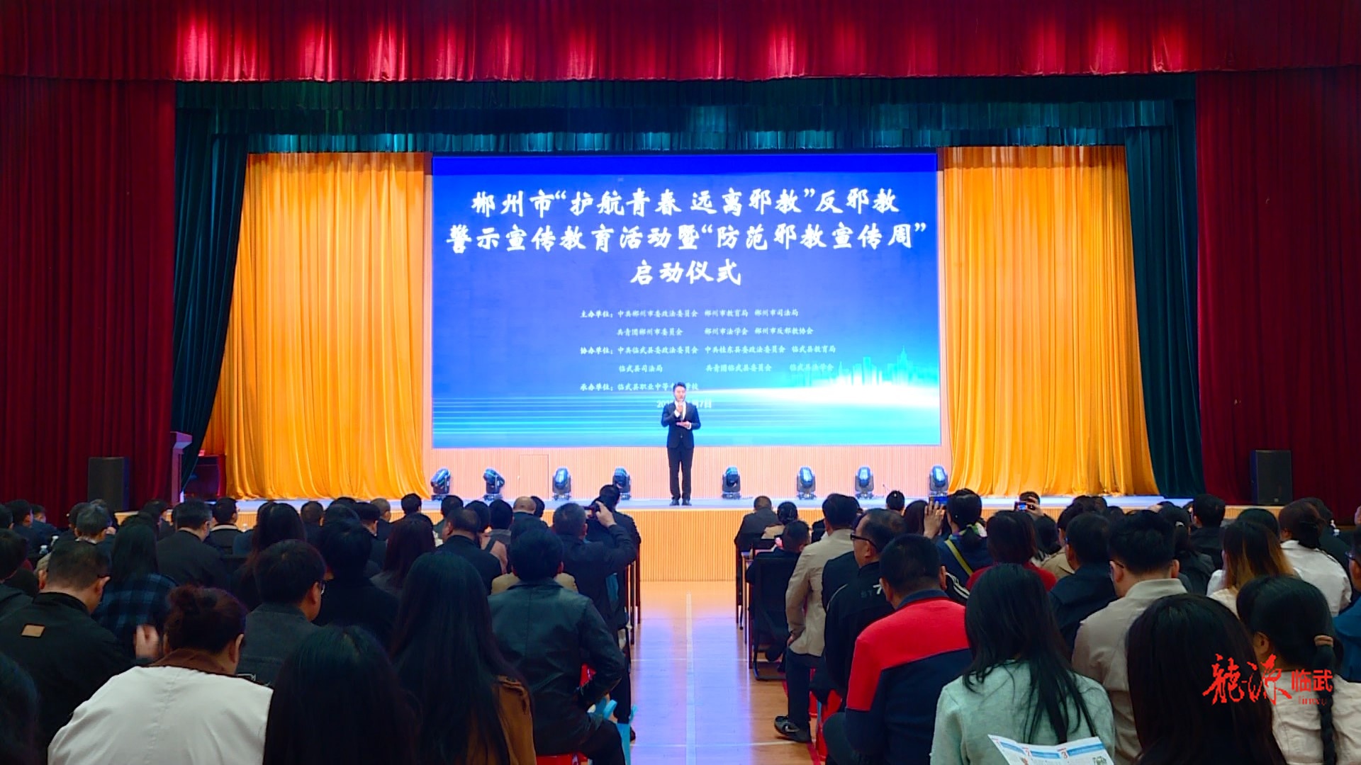 龙源临武客户端11月7日讯(记者 徐杨政 李亚鹏)11月7日,郴州市“护航青春 远离邪教”反邪教警示宣传教育活动暨“防范邪教宣传周”启动仪式在临武县职业中专举行。活动的开展将进一步增强广大青少年学生识别和抵制邪教的意识与能力,筑牢校园反邪教安全防线。市委政法委副书记何海清,县委副书记、县委政法委书记余亚军参加活动。