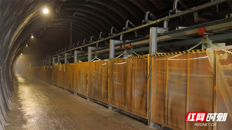 7.3公里隧道,是露天采场与选矿厂间矿石、石料运输通道。隧道内安装双层输送胶带,形成一条地下运输廊道,“大力抓手”直线输送采场锂矿石。