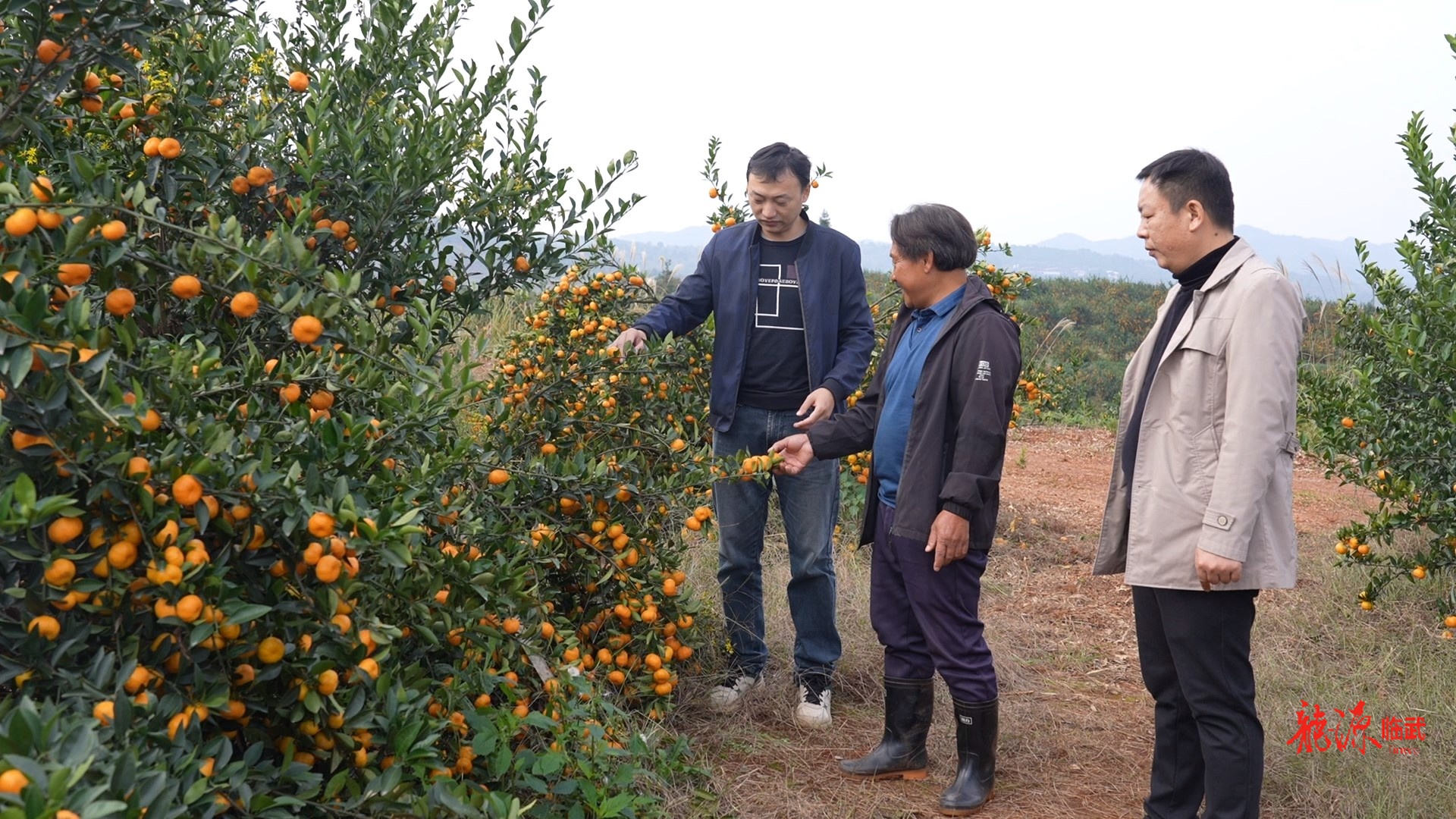 “我们自2017年开始种植,目前已发展种植面积三百余亩。今年预计产量将突破120万斤,平均每株果树产果约100斤。首批果实已销售至本县鸿源果业,后续我们将积极拓展市场,计划将产品销往广西等地。”黄光陆是合作社负责人,八年前响应政策号召返乡创业,承包了300多亩山地种植橘子。从种植“新手”成长为行家里手,除了自身勤学钻研,也离不开县农业农村局和麦市镇持续的技术帮扶。县镇两级不仅定期组织技术人员深入果园,在病虫害防治、剪枝疏果等关键环节提供常态化指导,还建立起与县农业农村局植保股的快速对接机制,及时解决技术难题。这种常态化的技术服务,作为惠农政策的重要一环,为种植户扫除了后顾之忧,有力保障了产业健康发展。