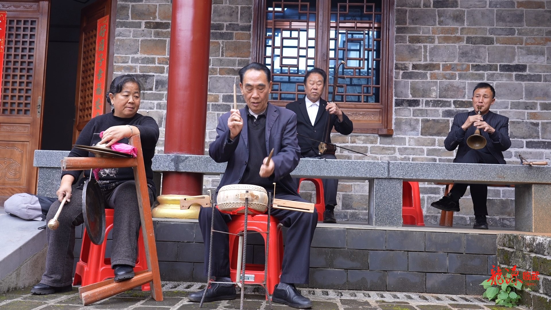 冬日的阳光洒进水东镇旺田村大冲坪自然村,落在一座古朴的四合院里。空气中飘荡着特别的韵律:锣鼓铿锵,弦乐悠扬,练嗓声清亮。这里,是罗氏家族剧团的日常排练场,也是一方承载百年戏曲记忆的天地。