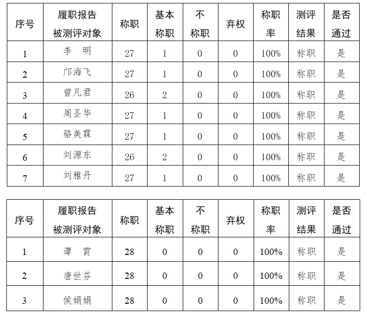 备注:称职率=(称职票+基本称职票)/总票