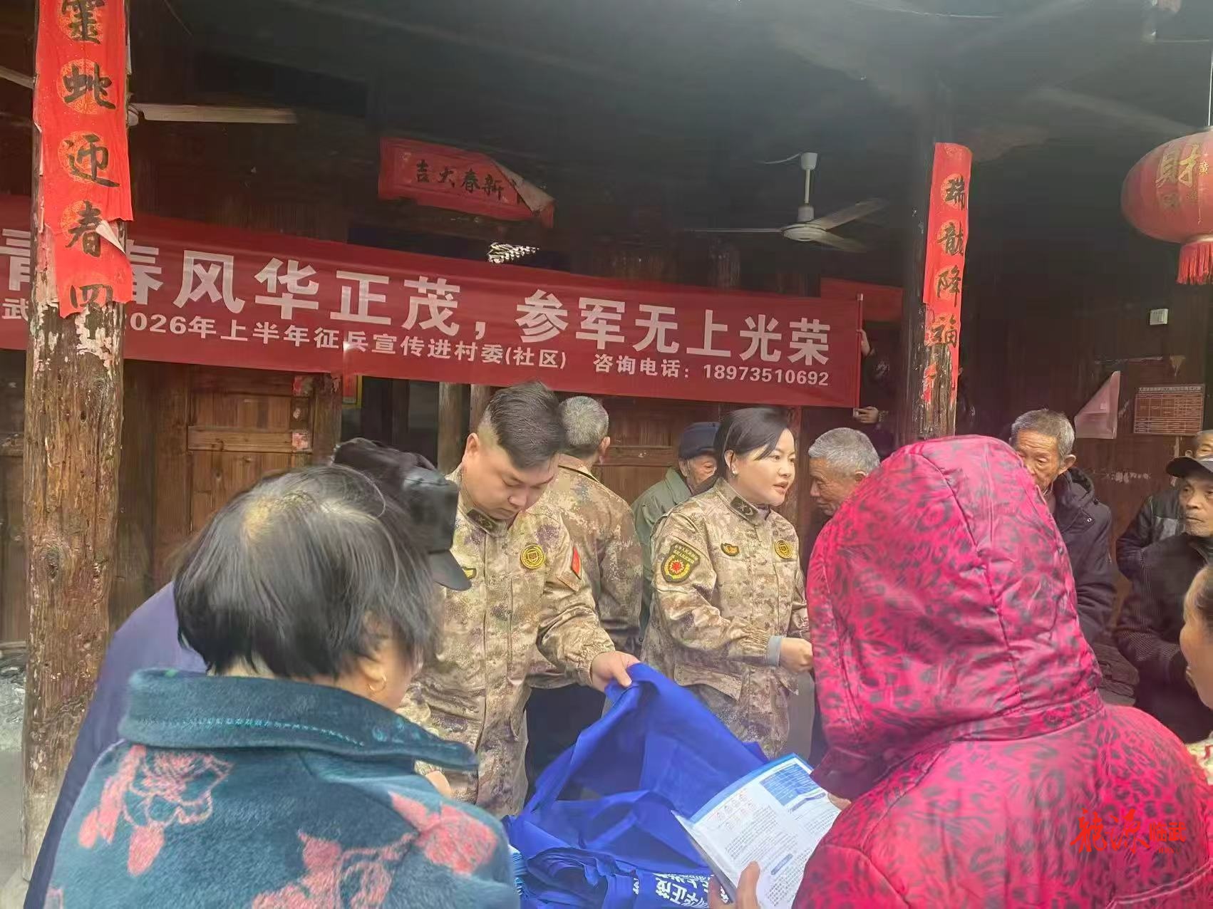 龙源临武客户端12月26日讯(通讯员 樊辉煌)为扎实推动春季征兵工作,激发适龄青年参军报国热情,近日,临武县武水镇武装部工作人员深入各村(社区)开展征兵宣传进基层活动,将征兵政策精准送达一线。