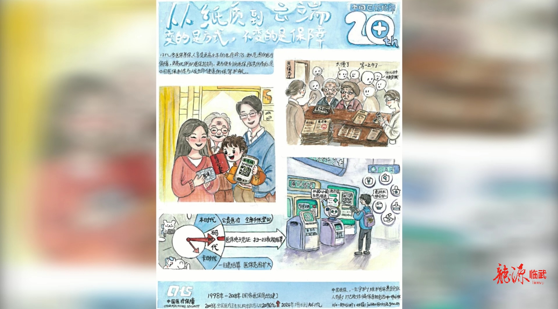 龙源临武客户端1月7日讯(记者 黄玲艳 雷婉婷)近日,由国家医疗保障局主办的“我和医保的20年”优秀作品征集评选活动结果正式揭晓。临武县中医医院一位医护人员创作的手绘漫画,一举拿下了全国二等奖!这组画讲的是一家三代人的医保故事,从爷爷辈的纸质本,到妈妈辈的医保卡,再到现在的手机扫码,画风温暖又真实,戳中了好多人的记忆。