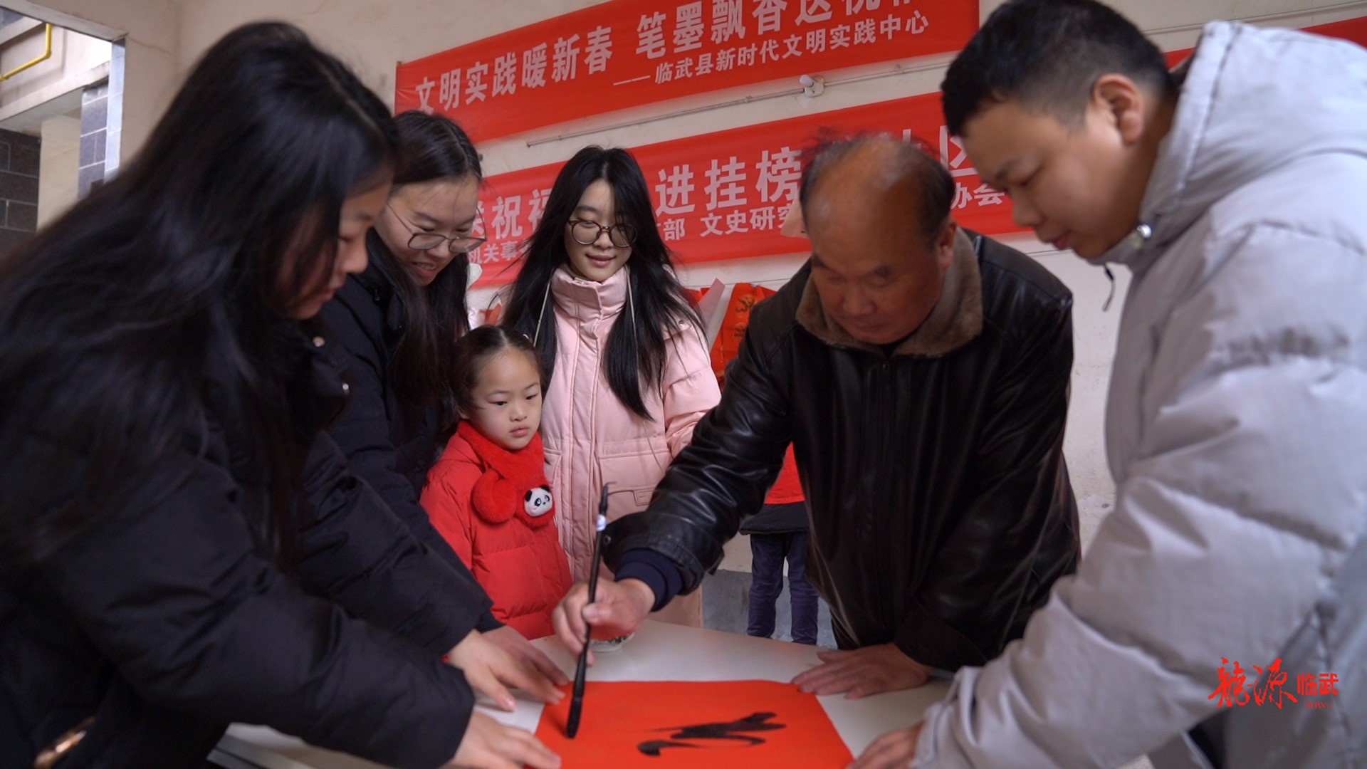 龙源临武客户端1月26 日讯(记者  邓圣立)新春将至,年味渐浓。1月25日,临武县机关事务服务中心联合县文史研究会、县书法家协会走进挂榜山社区,开展主题为“迎新春 送祝福”手写春联活动。