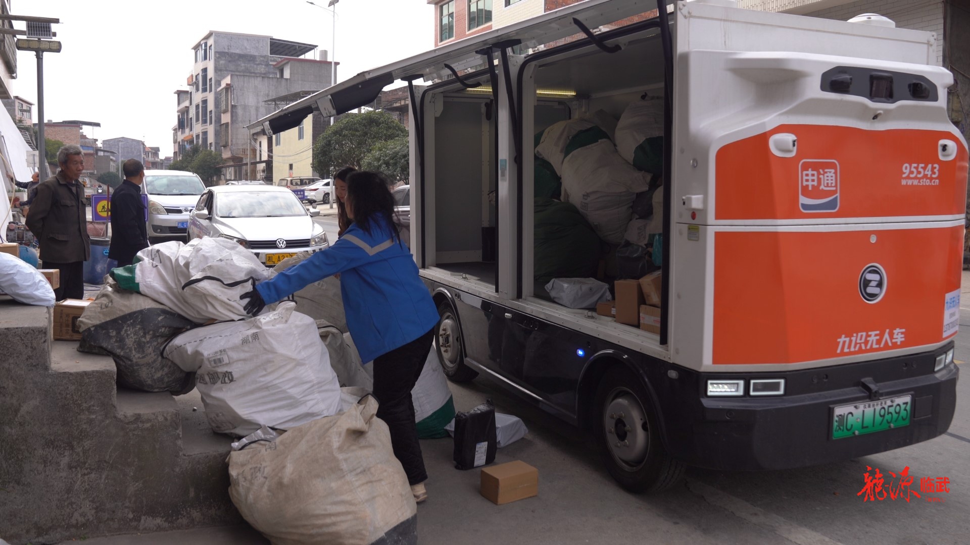 上午九点,临武县客货邮融合共配中心的分拣员李超熟练地把送往汾市镇的包裹码进无人车的“肚子”里。在手机上轻轻一点,这辆装满包裹的小车,就自己“睁开了眼睛”,稳稳地上了路。