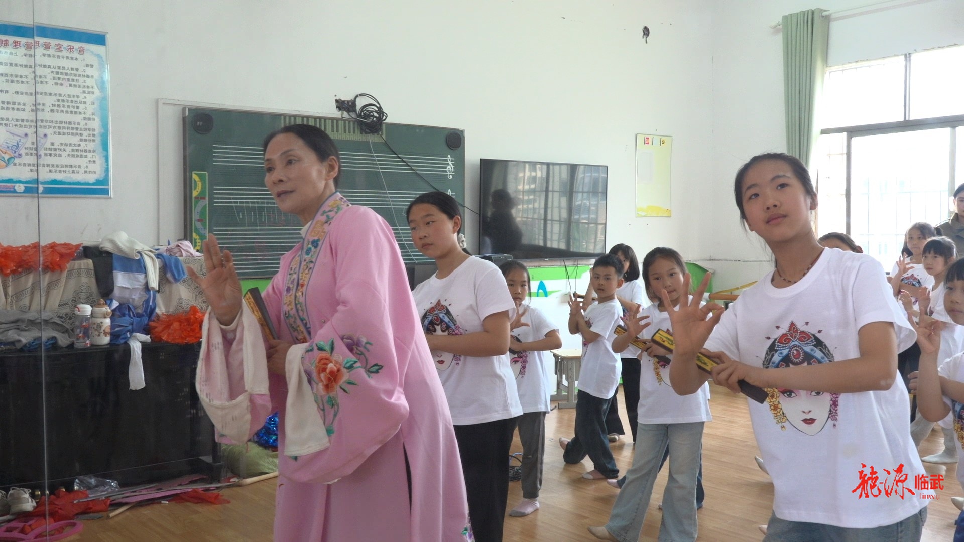 与绿茵场上的热血相比,临武县六完小的美育课堂更像一场温润的文化浸润。在戏曲鉴赏课上,孩子们正跟着老师学习祁剧的台步和唱腔,一招一式中感受本土传统文化的魅力。