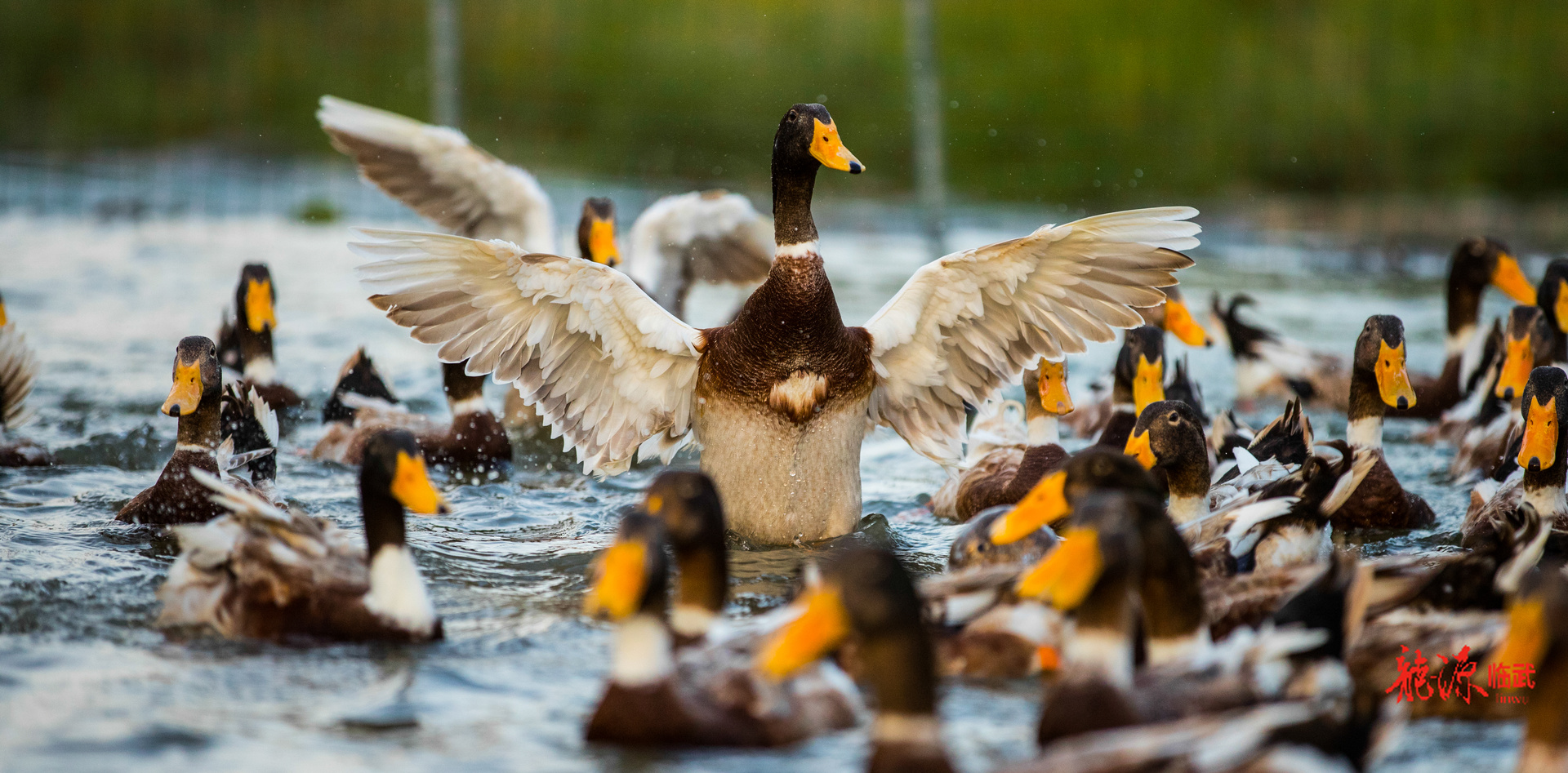​清晨,在舜华鸭业的标准化养殖农场里,养殖户正割下新鲜的牧草。鸭子们撒着欢抢食,满塘扑腾。这些鸭嘴带钩、脚掌宽大的临武麻鸭,每天要在山塘水库里游足8小时。