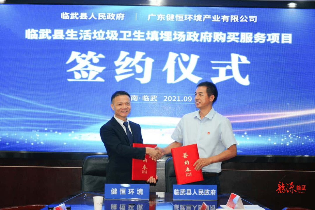 9月26日,临武县人民政府与广东健恒环境产业有限公司,就我县生活垃圾卫生填埋场政府购买服务项目举行签约仪式。
