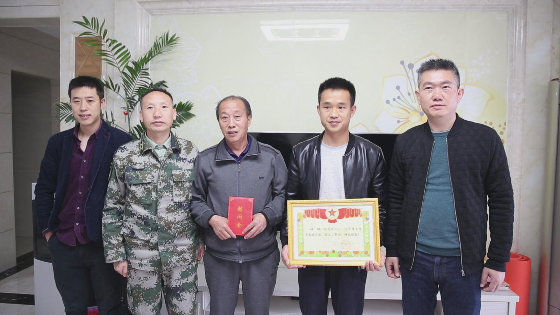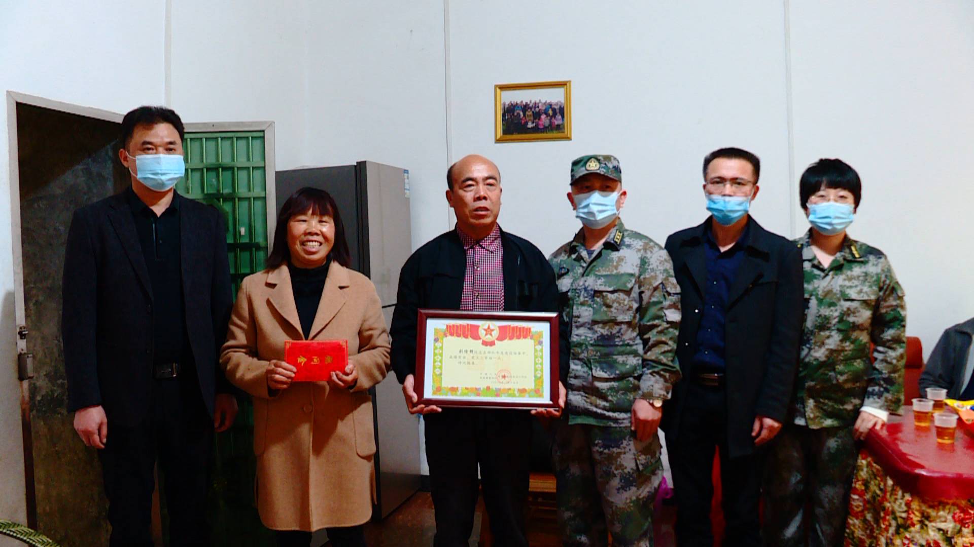 在现役军人蒋敏家中,慰问组为其家属送去了“三等功”喜报和慰问金并表示祝贺,同时希望家属能够一如既往支持孩子在部队安心服役,支持国防建设,争取再创佳绩。