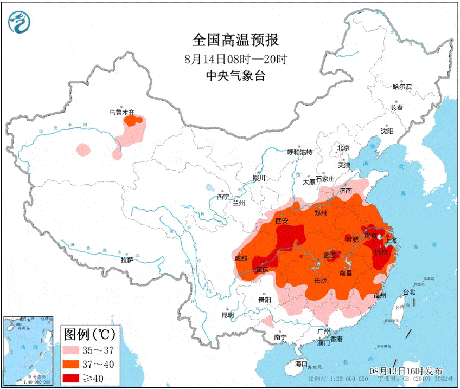 截至8月13日,中央气象台已连续24天发布高温预警,其中12日和13日已经连续两天发布了最高级别的红色预警。