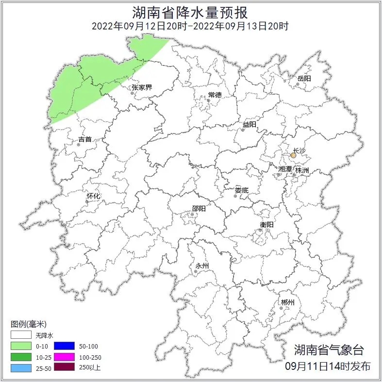 湖南日报9月11日讯(全媒体记者 胡盼盼)省气象台今天发布预报,预计未来三天湖南大部以多云间晴天天气为主,湘西局地多阵性降雨。