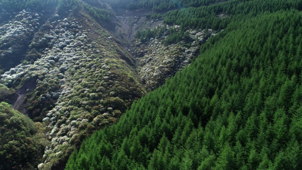 位于宁夏固原市隆德县境内的六盘山绿意盎然(2022年5月11日摄,无人机照片)。新华社记者 王鹏 摄