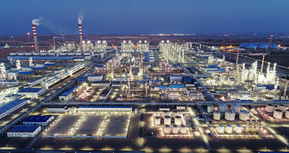 这是国家能源集团宁夏煤业公司400万吨煤制油项目夜景(2022年6月22日摄,无人机照片)。新华社记者 王鹏 摄