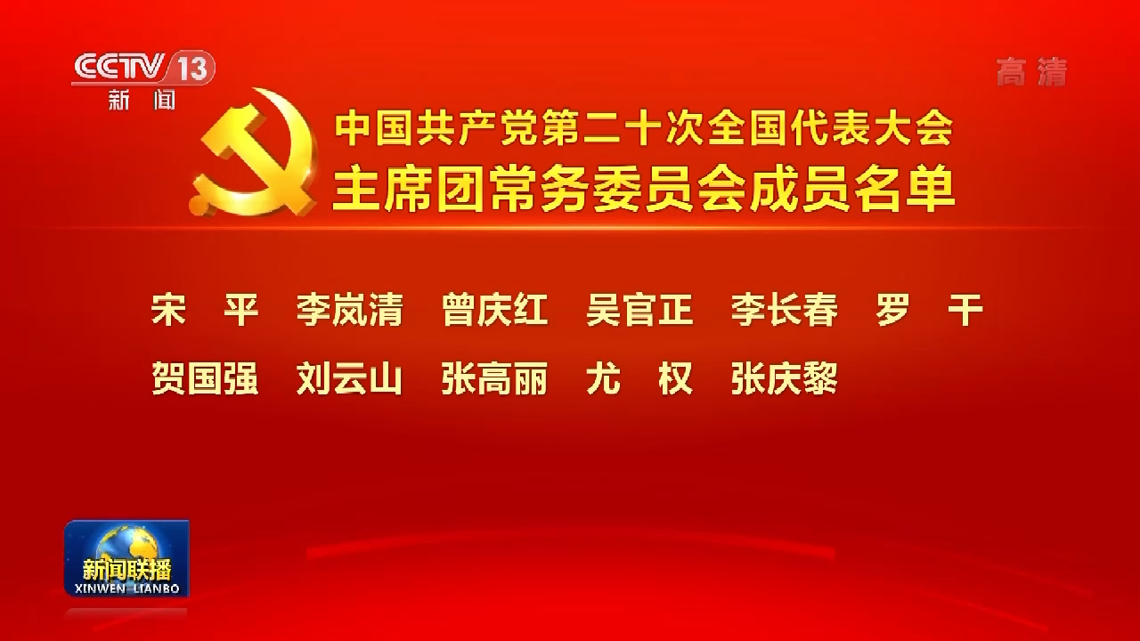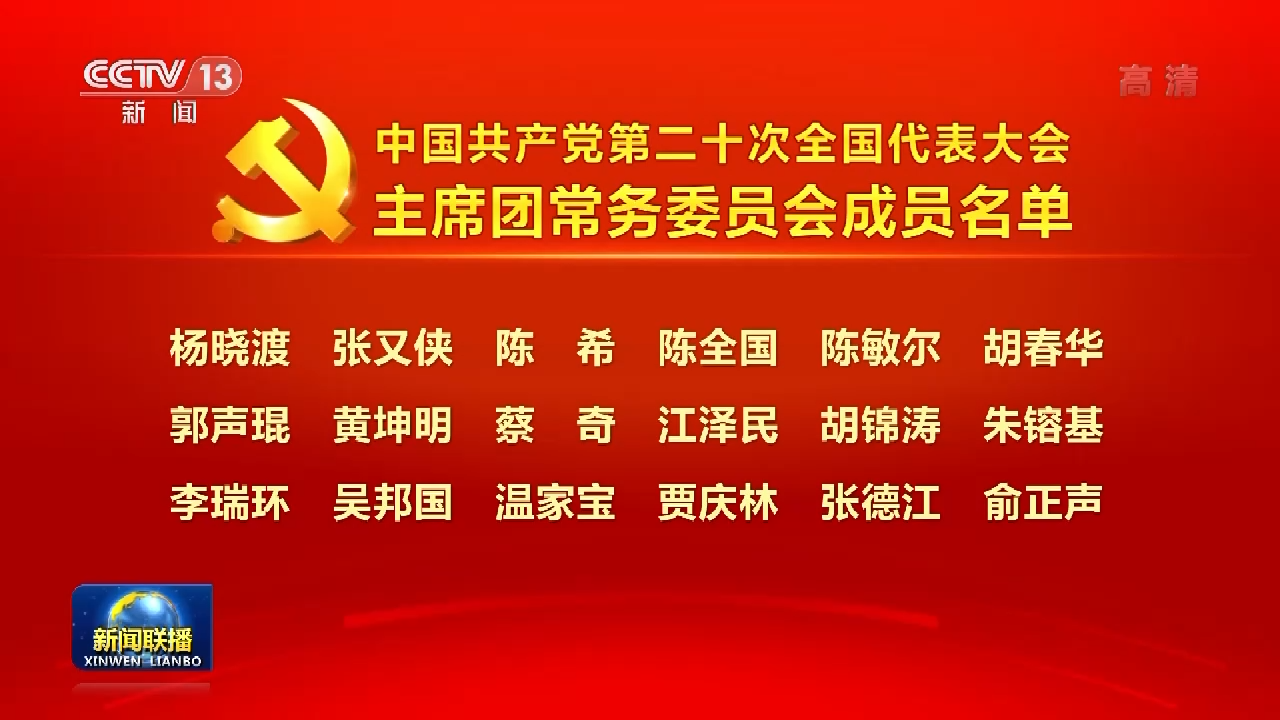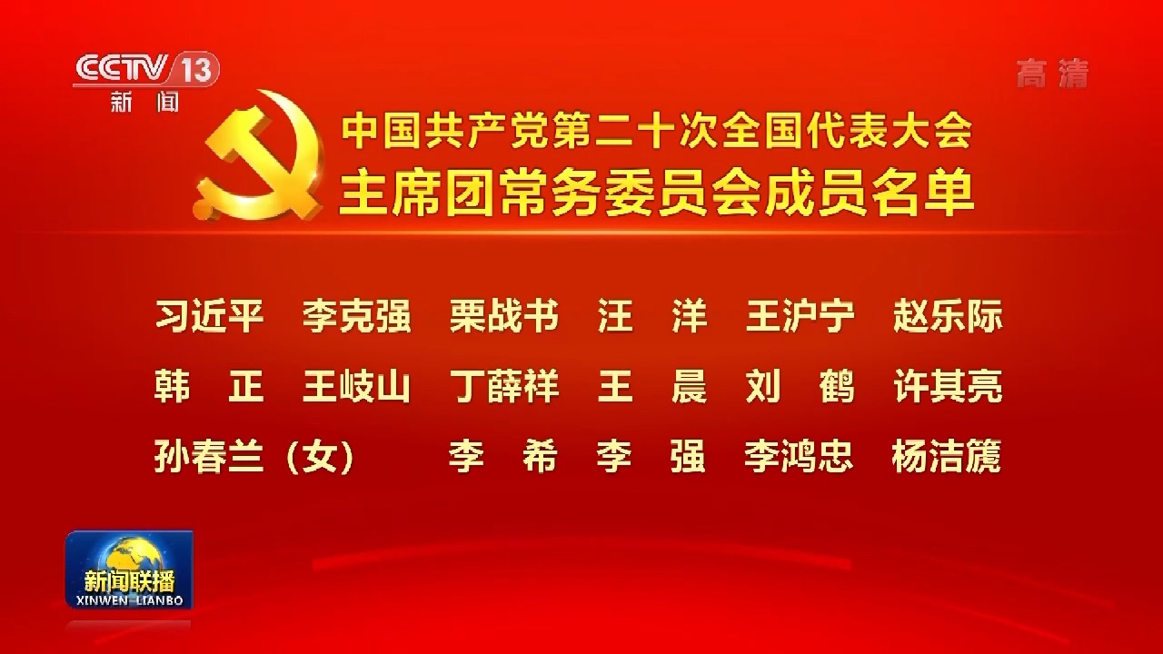 中国共产党第二十次全国代表大会主席团常务委员会成员名单。