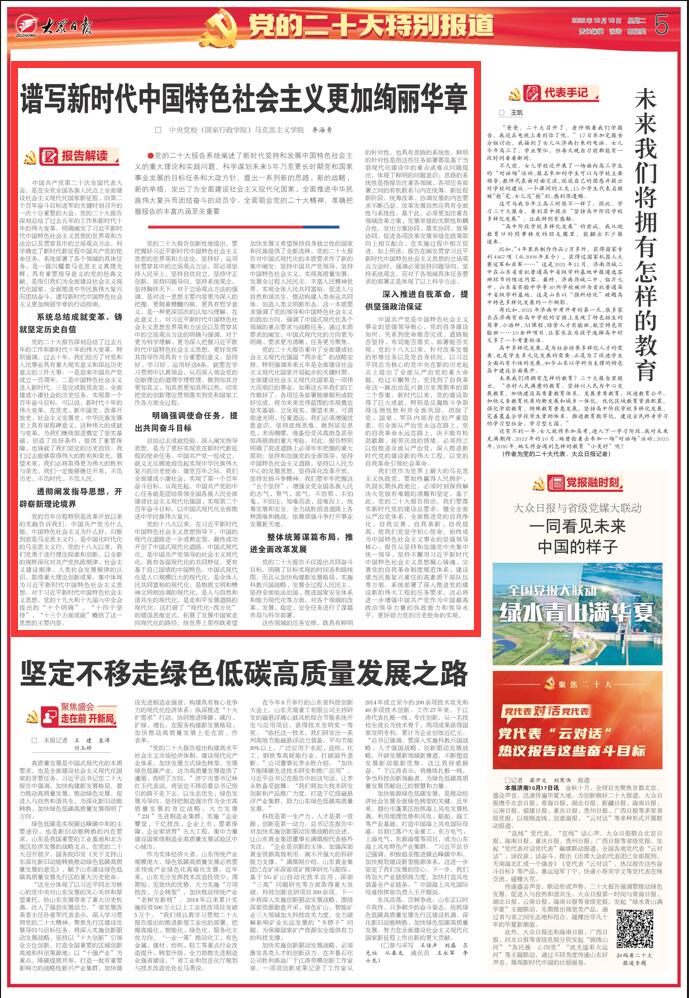 10月16日,党的二十大胜利开幕。为更好学习宣传贯彻党的二十大精神,大会召开期间,大众日报特邀中央党校(国家行政学院)专家学者围绕二十大报告进行解读,今天刊发第一篇——《谱写新时代中国特色社会主义更加绚丽华章》。敬请关注。