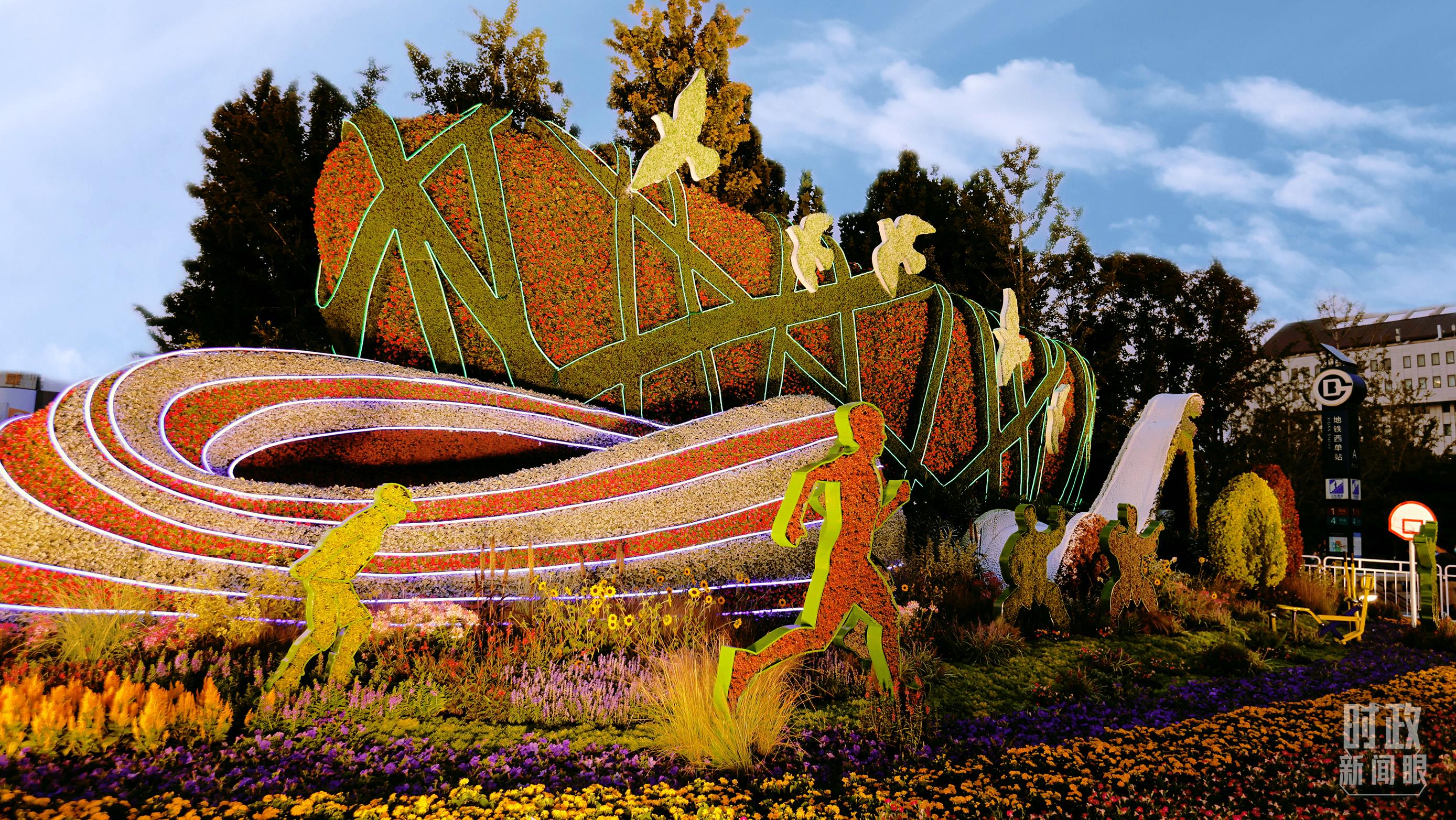 △北京长安街沿线的“创新发展”主题花坛。(总台央视记者魏帮军拍摄)