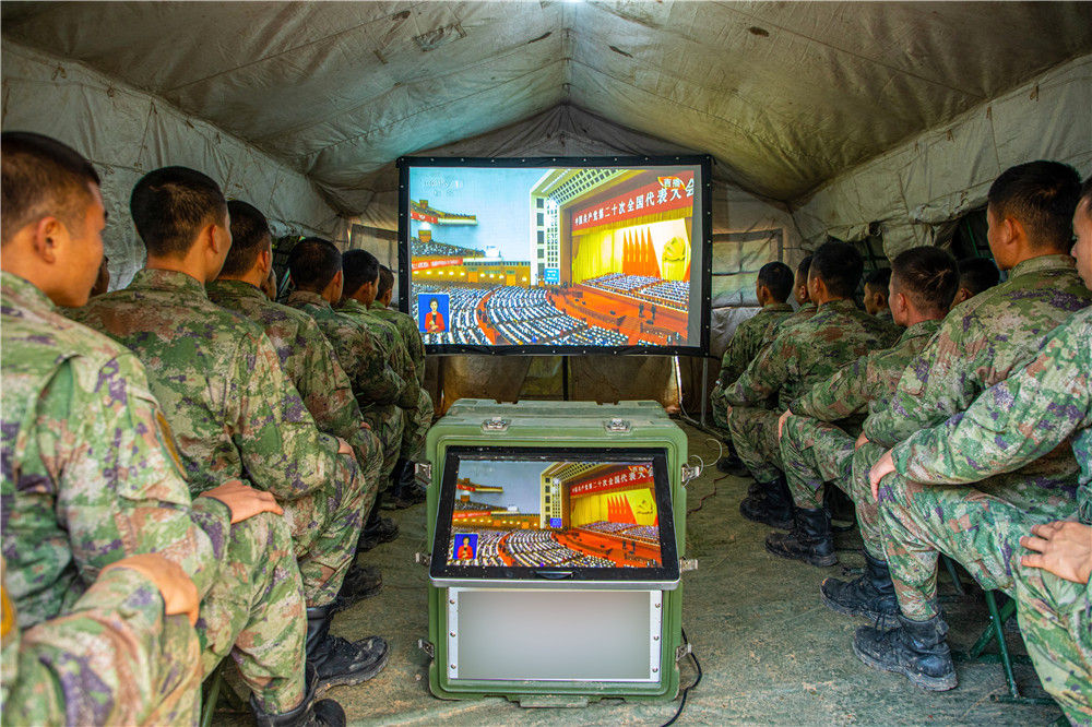 从军委机关到任务部队,从边防海岛到异国他乡,从荒漠戈壁到深山密林……全军官兵通过广播、电视、网络等认真收听收看党的二十大开幕会并展开学习讨论。