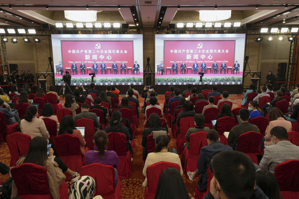 10月19日,中国共产党第二十次全国代表大会新闻中心举行集体采访。山东、河南、湖北、湖南、广东、广西、海南代表团新闻发言人出席,介绍代表团学习讨论二十大报告情况,并回答记者提问。