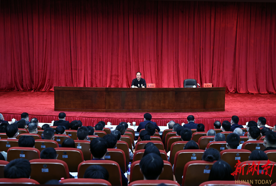 毛伟明来到长沙经开区管委会,向园区企业负责人及职工党员代表400余人作宣讲报告。毛伟明强调,要全面学习党的二十大精神。他说,新时代十年,以习近平同志为核心的党中央以“中国之治”创造了经济快速发展和社会长期稳定“两大奇迹”,以“中国之理”科学回答了中国之问、世界之问、人民之问、时代之问,以“中国之路”印证了“两个确立”的决定性意义,以“中国之智”凝聚了“两个结合”的时代精华,以“中国之略”统筹了“两个大局”的“时”与“势”,以“中国之美”展现了“两山理论”的实践伟力,以“中国之策”给出了跳出治乱兴衰历史周期率的“第二个答案”,以“中国之景”昭示了“中心任务”的光辉未来,将不断夺取全面建设社会主义现代化国家新胜利。
