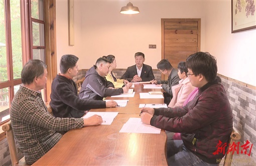 11月22日,党的二十大代表、韶山村党委书记毛春山在韶山村梦稀乡宿民宿主持召开屋场会。湖南日报全媒体记者 蒋睿 摄