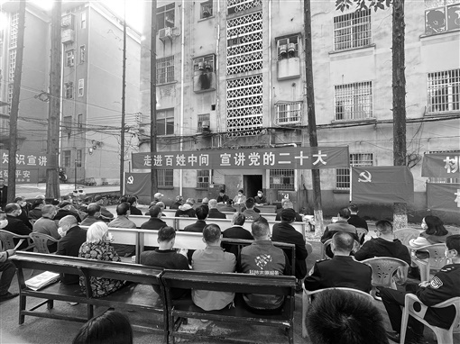 11月9日,桃矿街道开展党的二十大精神微宣讲进楼栋活动。 李舒 摄