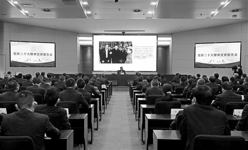 曹慧泉围绕深刻把握党的二十大主题、过去五年工作和新时代十年的伟大变革、中国式现代化等7个方面,作了深入、全面的解读。