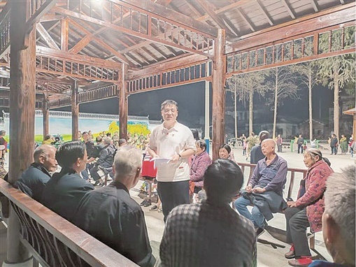 11月10日,沅江市草尾镇上码头村,村干部向村民宣讲党的二十大精神。