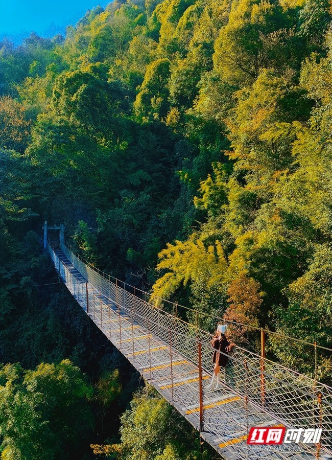 森林温泉中的丛林悬空吊桥长达数十米,你可以在此近观山峦起伏,远眺满目苍翠,仿佛置身于人间仙境。走在桥上摇摇晃晃,体验惊险刺激。