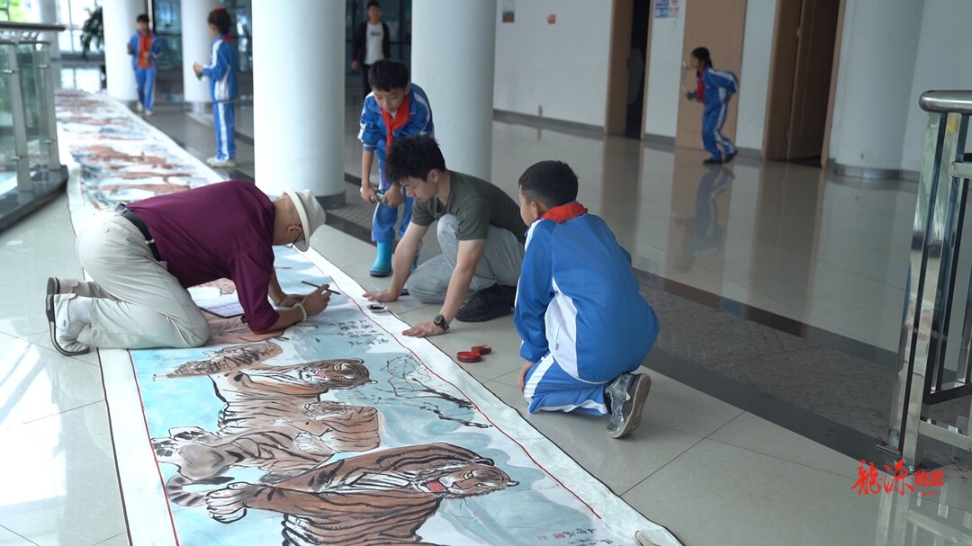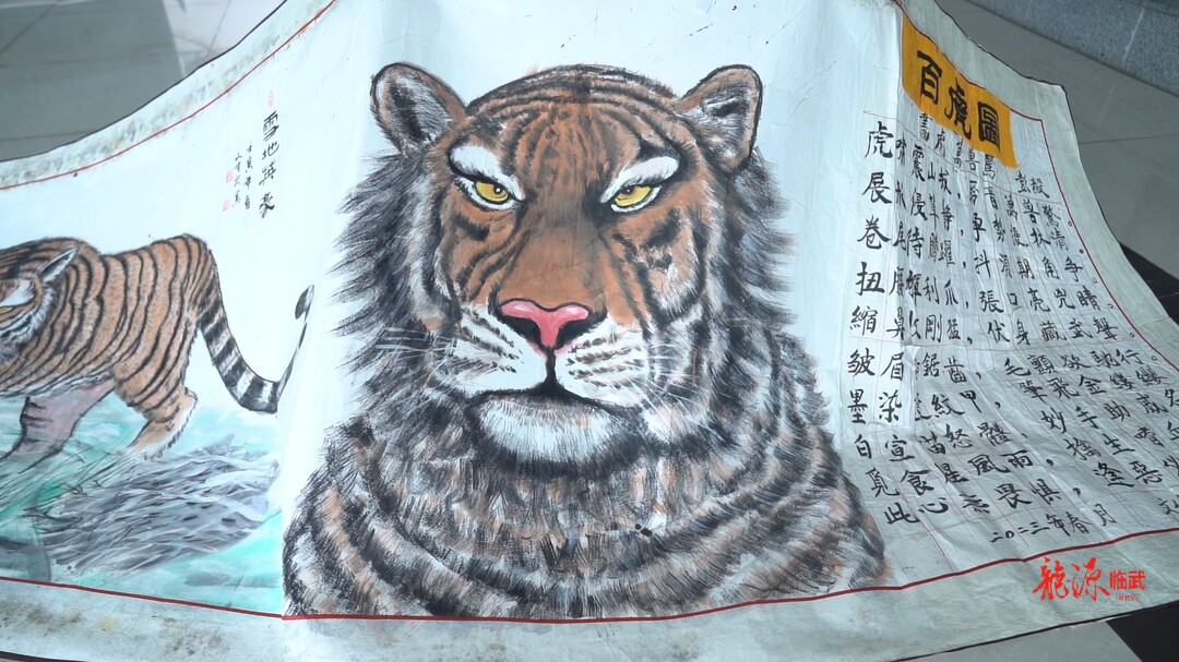 为了庆祝党的二十大胜利召开,去年又是虎年,虎虎生威嘛,一个晚上可以画四只,差不多一个小时画一只虎。”去年是党的二十大胜利召开之年,文仲武也想用自己的方式致敬心中那颗炙热的“党心”,他告诉记者,这幅百虎图是虽然从去年春天就开始画,但真正画的时间只花了一个多月。