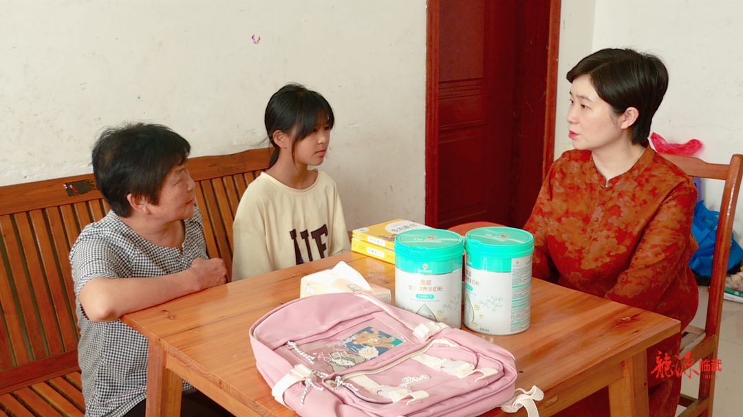 在曾欢雨的家中,尹海莲亲切地与她交流,详细询问其学习情况和家庭情况,并送上学习和生活用品以及慰问金,鼓励她克服困难,以积极的心态面对生活,努力学习,通过知识改变现状。今年12岁的曾欢雨就读于南强中心小学六年级,父亲离世、母亲改嫁,一直由奶奶照顾,家庭十分困难。多年来,尹海莲一直关注孩子的成长,并多次进行走访慰问和帮扶。