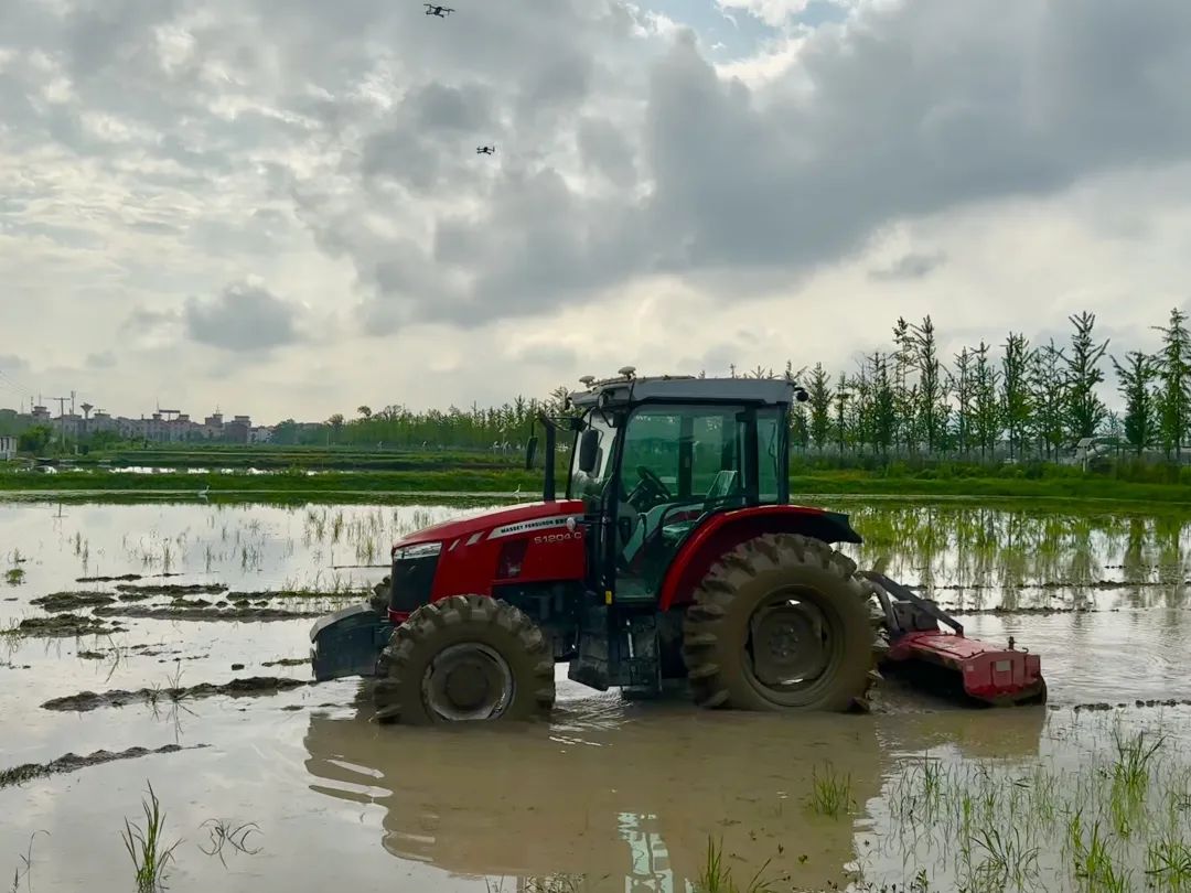 浙江省金华市东阳市城东街道寀卢村的一台无人驾驶耕地机。静玄 摄