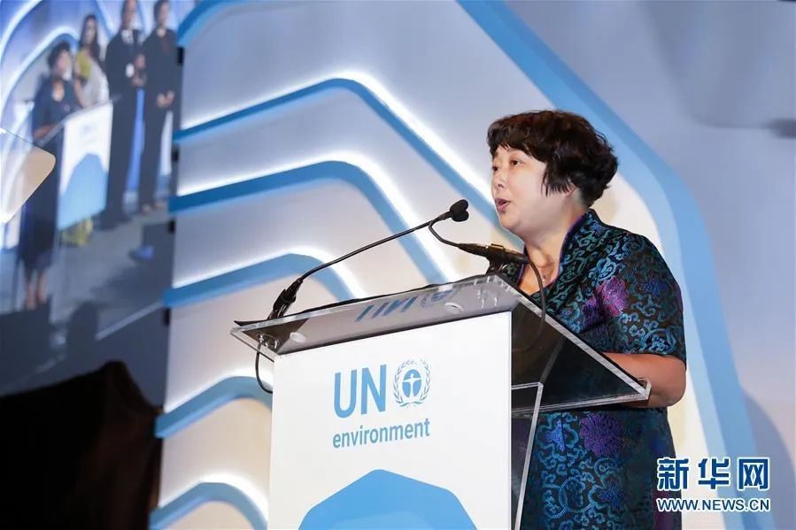 2018年9月26日,联合国环境规划署“地球卫士奖”颁奖典礼在美国纽约举行,浙江省安吉县递铺镇鲁家村村民裘丽琴在颁奖仪式上发表获奖感言。新华社记者 李木子 摄