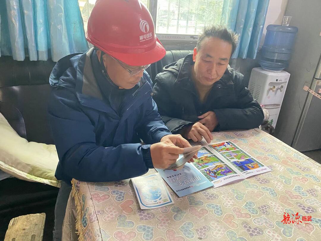 1月22日,郴电国际临武分公司汾市供电所台区负责人在武水镇同益村开展“敲门行动”时对村民文爱忠说道。