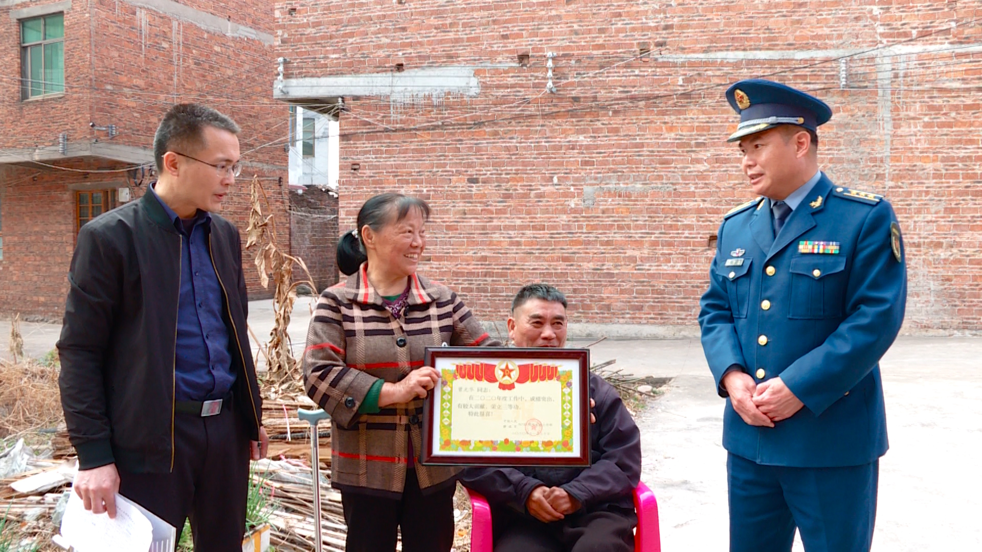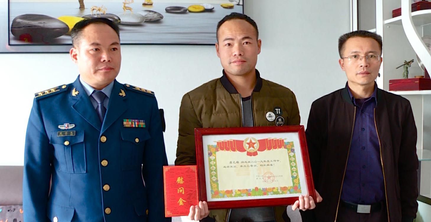 2月5日,县人武部部长黄祖民走访慰问2020年荣立三等功的唐元雄、曾光华、邱显林等6名现役军人家属,并为他们送去喜报和慰问金。