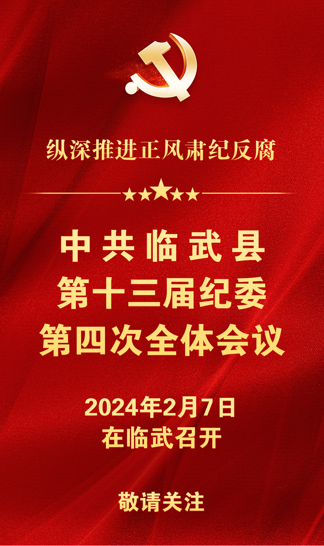 中共临武县第十三届纪委第四次全体会议将于2024年2月7日召开