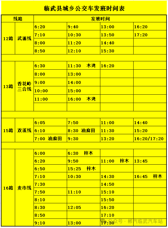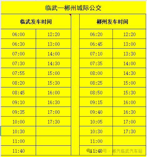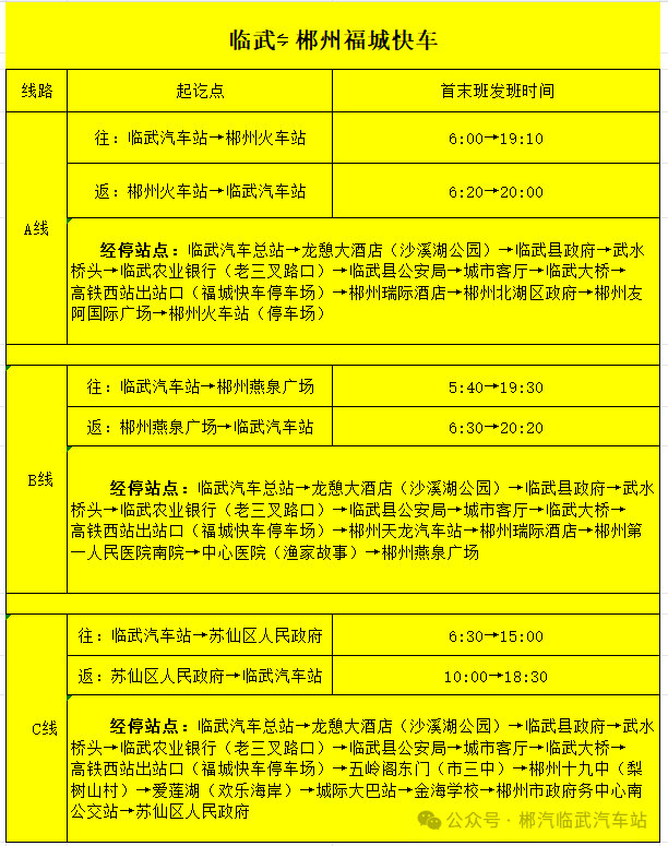 来源:郴汽集团临武汽车站