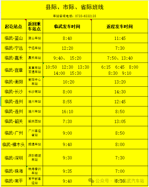 春节出行必看!临武汽车站所有班次表