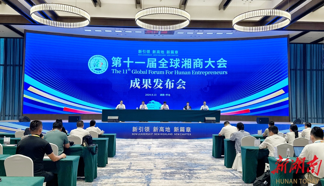 2024年9月13日下午,第十一届全球湘商大会成果发布会在怀化市举行。湖南日报全媒体记者 徐行 傅聪 摄影报道