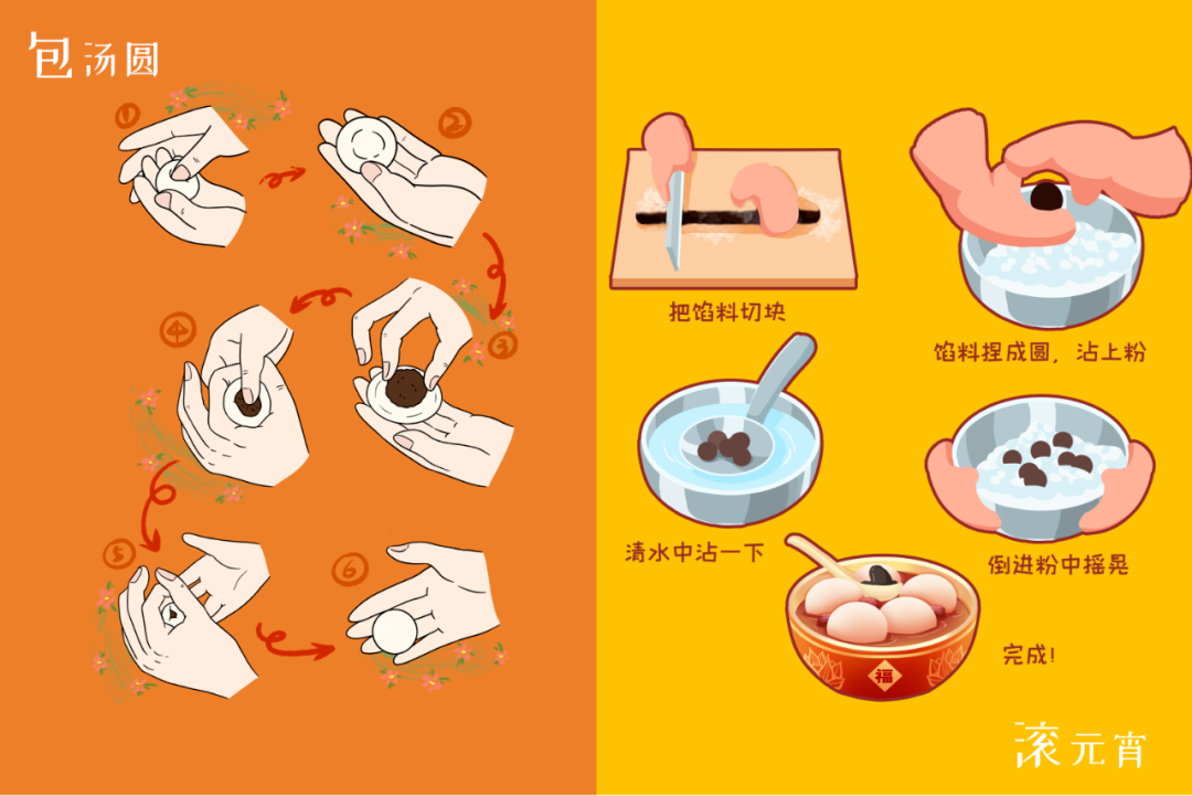 “包汤圆”和“滚元宵”,两者所用的原料、配料基本相同,但制作工艺略有不同,口感亦有所区别。消费者可根据自己的喜好,按照产品上标示的名称,选购汤圆或元宵。