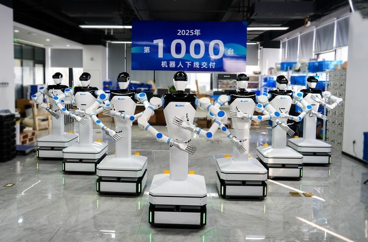 这是湖南睿图智能科技有限公司2025年第1000台机器人下线交付现场。(受访者供图)