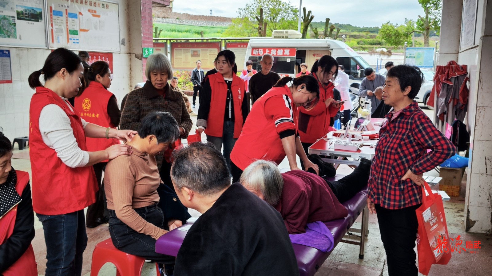 宣讲结束后,“十进”便民服务队还同步开展义诊、义剪、按摩等暖心服务。为村民们测量血压血糖提供健康咨询,帮助村民缓解身体疲劳,以及为老人修剪出清爽的发型——贴心周到的服务,获得了现场村民的一致好评。
